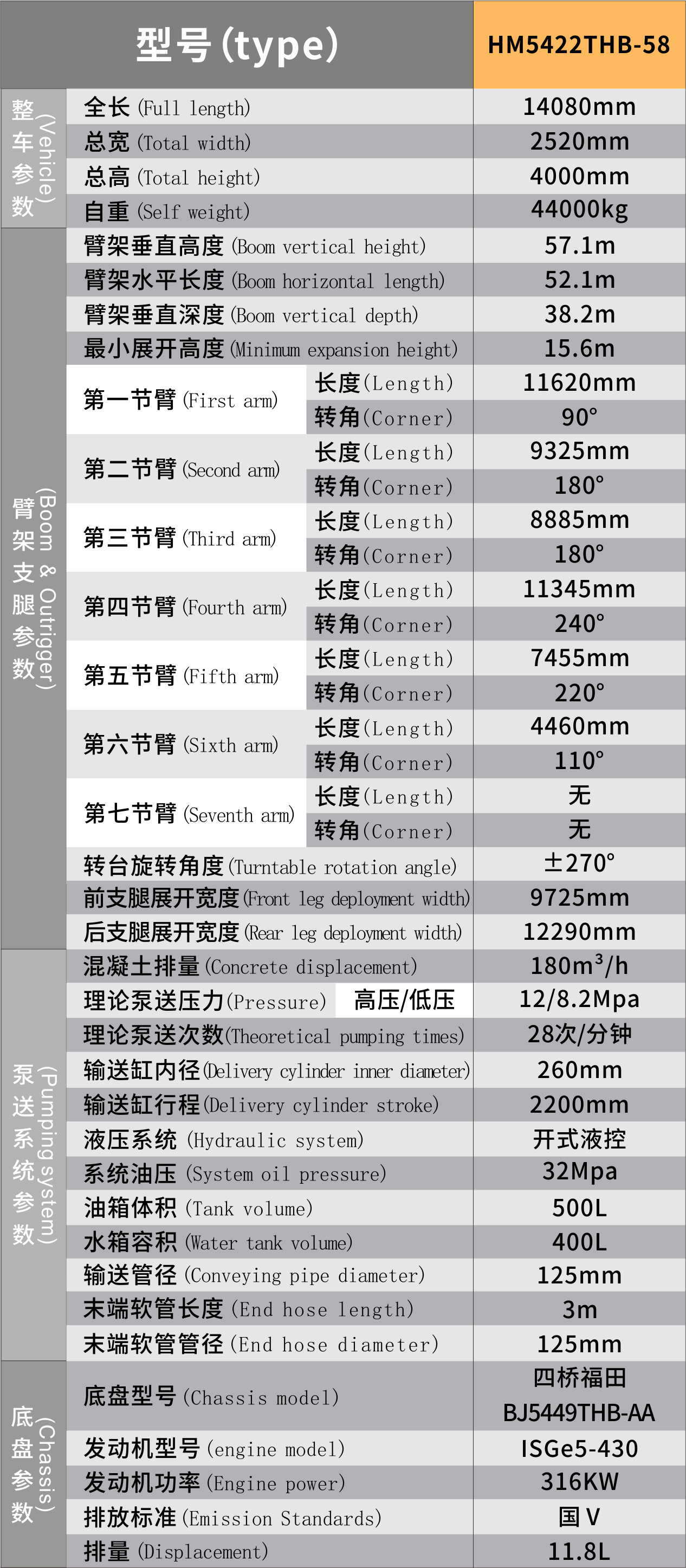 HM5422THB-58四橋58米國五五十鈴底盤泵車